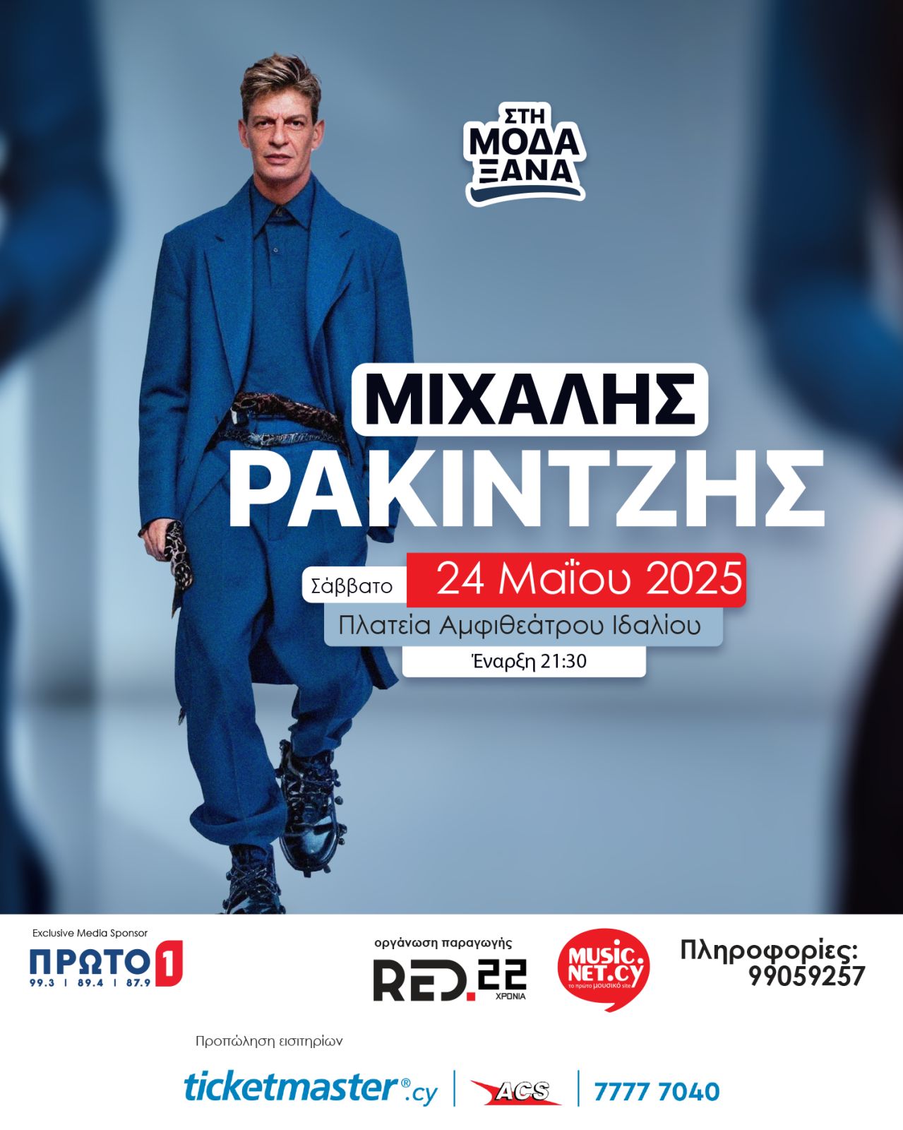 24/05/2025 00:00 Μιχάλης Ρακιντζής Περισσότερα 29/05/2025 00:00 Orchestra 4 All 3 ΣΥΝΑΥΛΙΕΣ ΚΟΙΝΩΝΙΚΗΣ ΠΡΟΣΦΟΡΑΣ Δάλι: Πέμπτη 29 Μαΐου 2025 Δημοτικό Αμφιθέατρο Ιδαλίου, 20:00 Εδώ ... Περισσότερα